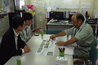 当日は、女性社員2名が現場事務所にて工事概要の説明を受けた後、事務所・休憩所・トイレ等の現場関係者の環境面について、女性ならではの質問・指摘がなされました。