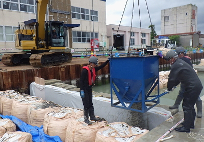 海上地盤改良工(床掘工) 土砂掘削(3m3バックホウ台船による)