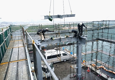 上屋躯体工 鉄骨 建て込み状況